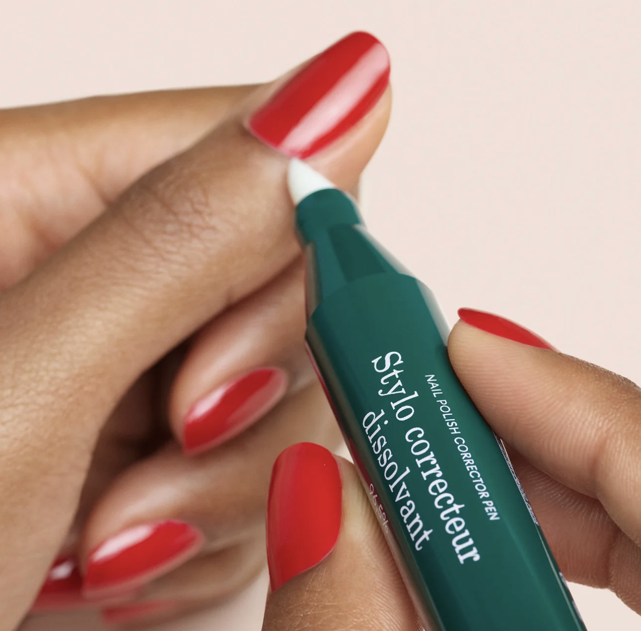 Le Stylo Correcteur Dissolvant efface avec précision et en douceur les défauts d’application du vernis semi permanent Green Flash™ et du vernis à ongles Green™.