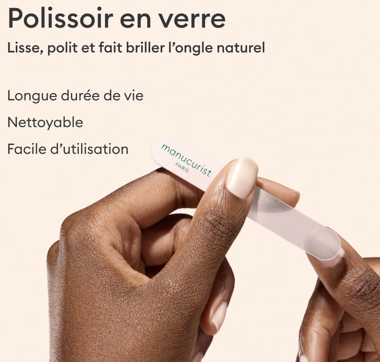 Le Polissoir Premium en verre, réutilisable à l'infini, pour lisser, polir et faire briller la plaque de l'ongle naturel.