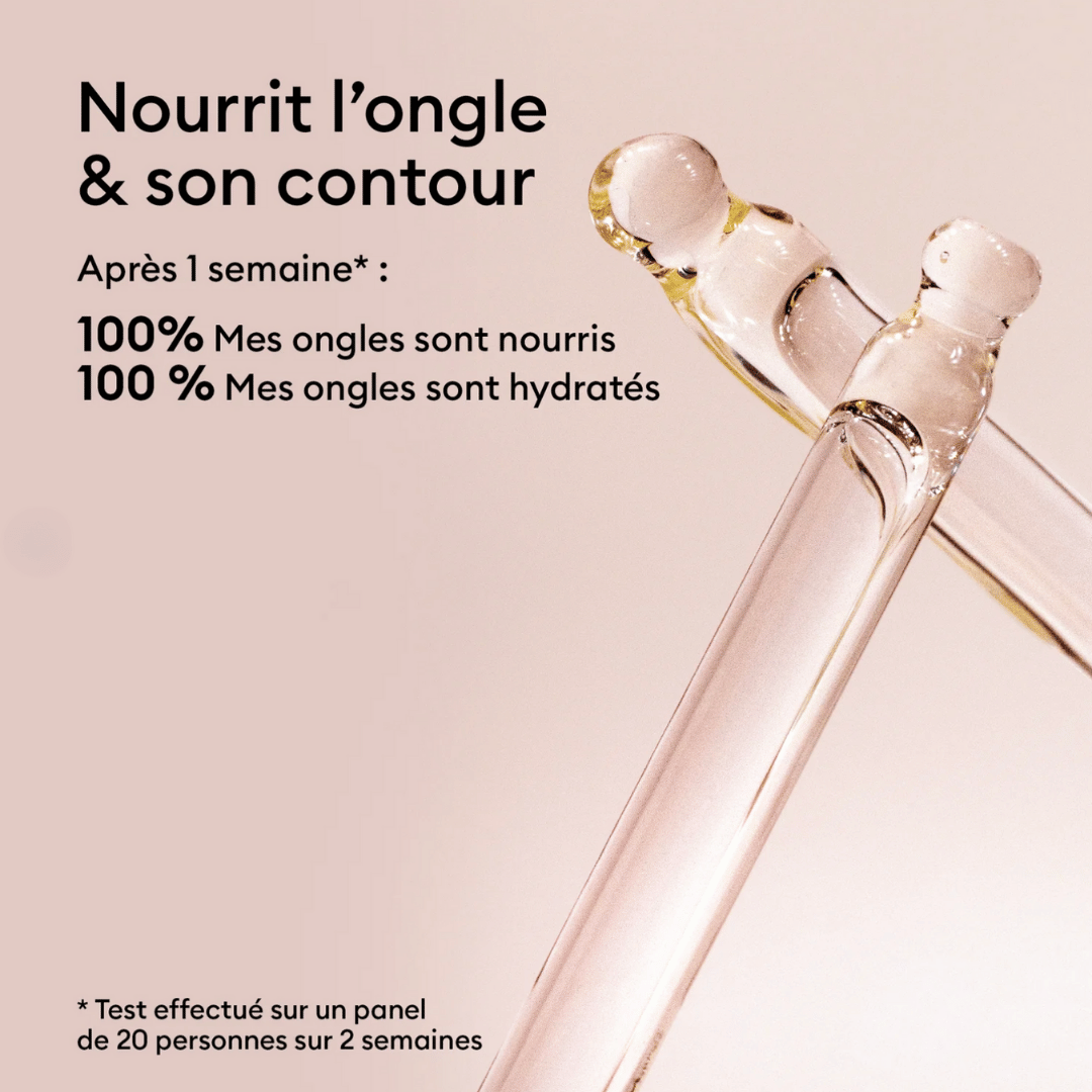 Appliquer une goutte d'huile sur les ongles et leurs contours. Masser pour faciliter son absorption. Laver et sécher soigneusement vos ongles si un vernis à ongles doit être appliqué. Pour une routine encore plus nourrissante et hydratante, précédez l’application de l’huile par quelques gouttes de Sérum Complet.