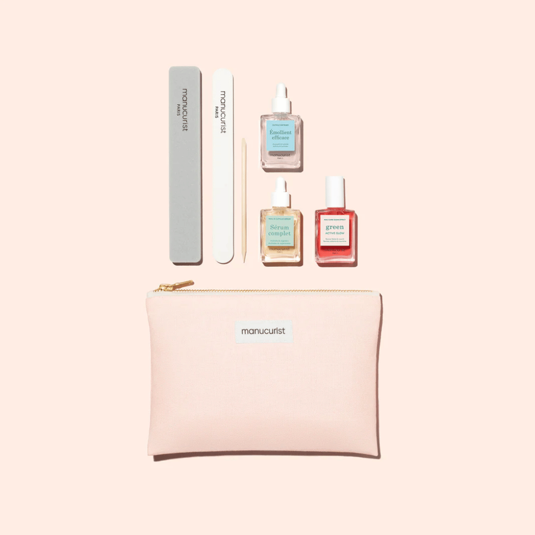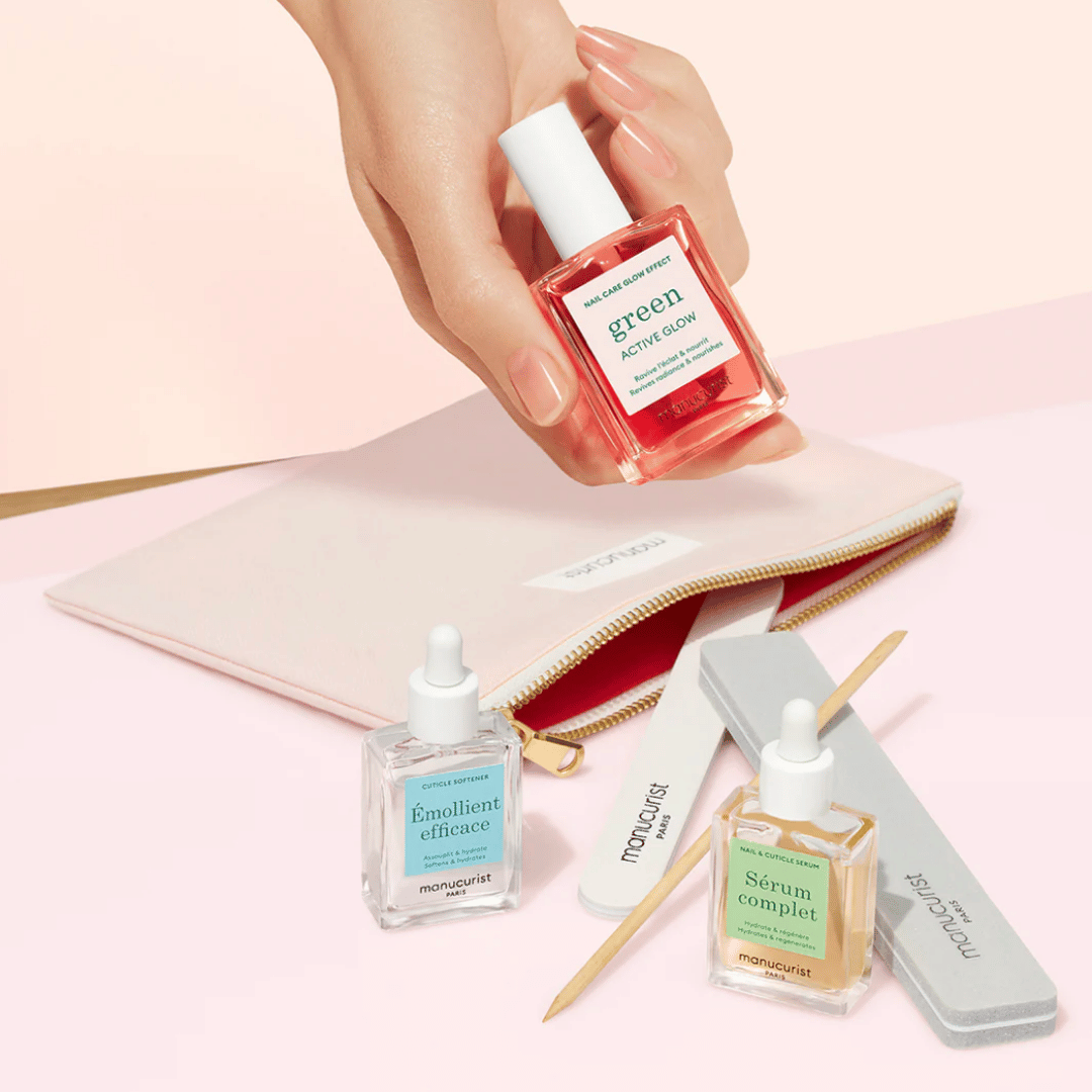 Ready to glow ? Une trousse en édition limitée regroupant nos essentiels pour booster naturellement l'éclat de vos ongles et leur offrir un glow rosé instantané. Une routine de soin en 3 étapes regroupant les incontournables de la préparation : une lime, une lime préparatrice et un émollient, notre vernis soin best-seller Active Glow à l'effet modulable et le Sérum Complet pour préparer, soigner et hydrater en profondeur ongles et cuticules. ✨ Découvrez le guide d'application de la routine à l'intérieur de la trousse.