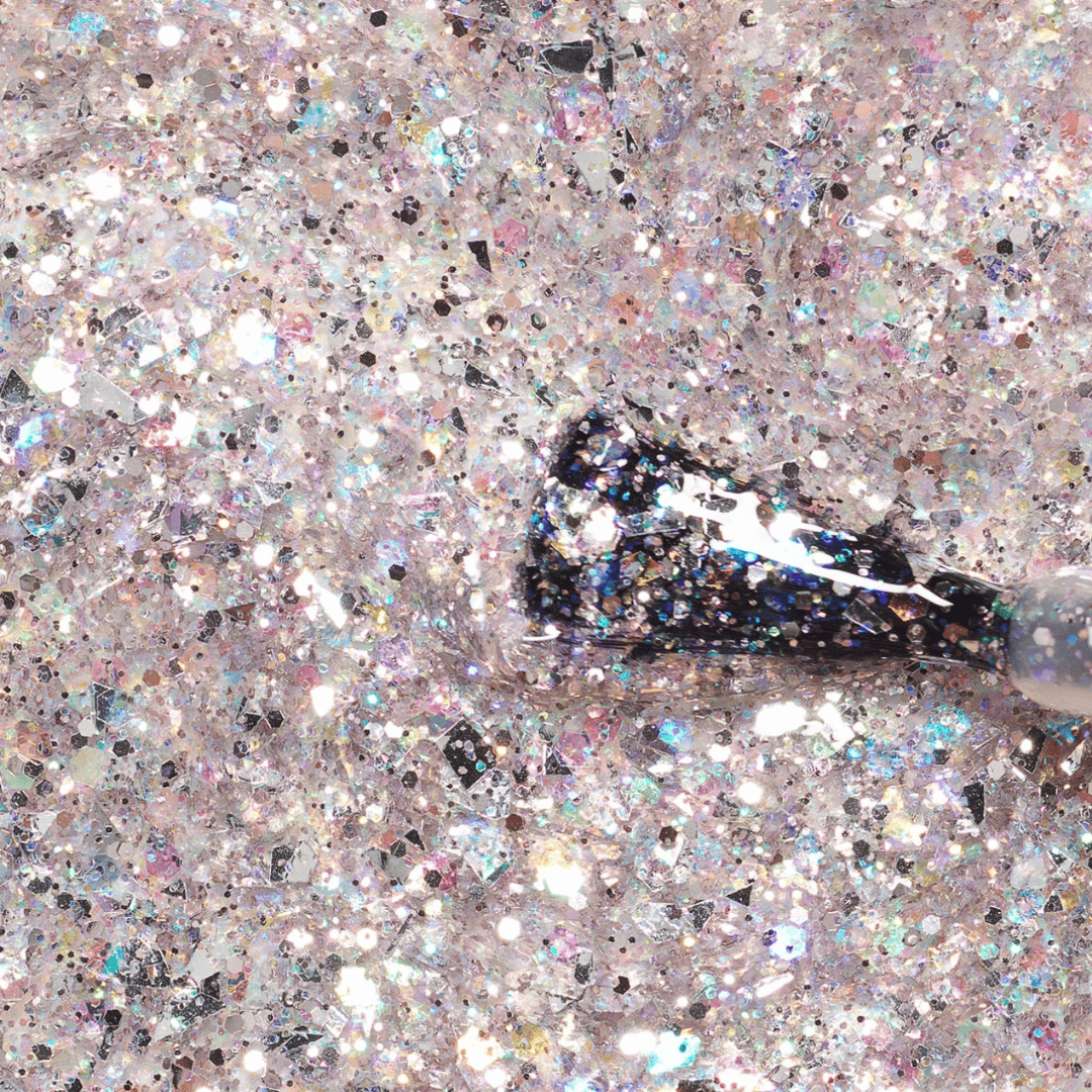 Un vernis à ongles argenté aux paillettes multicolores de la gamme Green™.