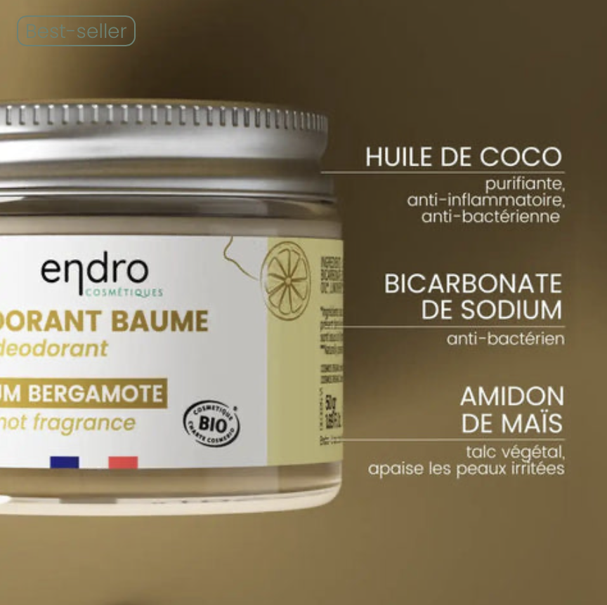 Son efficacité 48H et son odeur fraîche et acidulée ont fait de ce déodorant un de nos best-sellers. Sa texture fondante en baume va neutraliser les mauvaises odeurs sans bloquer le processus de transpiration grâce au bicarbonate de sodium et aux huiles essentielles de Bergamote et d'Arbre à thé. Sans sels d’aluminium, sans alcool, sans conservateurs, il ne contient aucun ingrédient dangereux pour la santé et est l'alternative idéale aux déodorants conventionnels. Contrairement aux idées reçues, la sueur est pratiquement inodore. Ce sont les bactéries qui sont responsables des mauvaises odeurs corporelles. Notre déodorant d’origine naturelle contient de l’huile de coco bio et du bicarbonate de sodium qui ont des vertus purifiantes et antibactériennes. A ceci, vient s’ajouter les huiles essentielles de bergamote et d’arbre à thé qui sont des antibactériens et antifongiques à large spectre. Le petit plus, l’amidon de maïs qui est absorbeur d’humidité naturel pour des aisselles au sec !