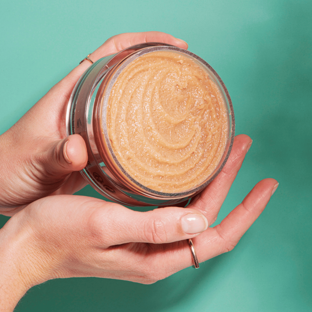Les cristaux de sucre de ce gommage fondent sur la peau pour éliminer efficacement les cellules mortes et affiner le grain de peau.